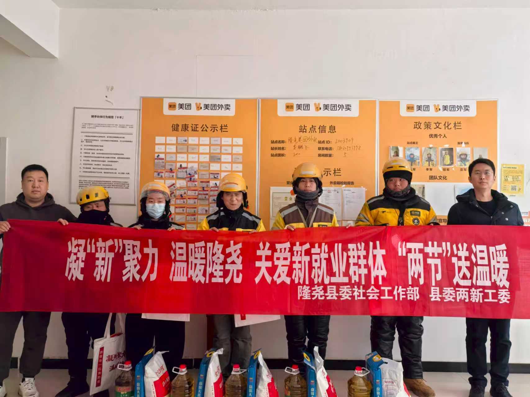 春节将至,年味渐浓。为切实关心关爱新就业群体,让他们度过一个温暖、祥和的新春佳节,2月11日,隆尧县委社会工作部组织开展春节送温暖活动,为快递员、外卖骑手、货车司机等新就业群体送去冬日关怀与节日问候,传递党和政府的关怀与温暖。