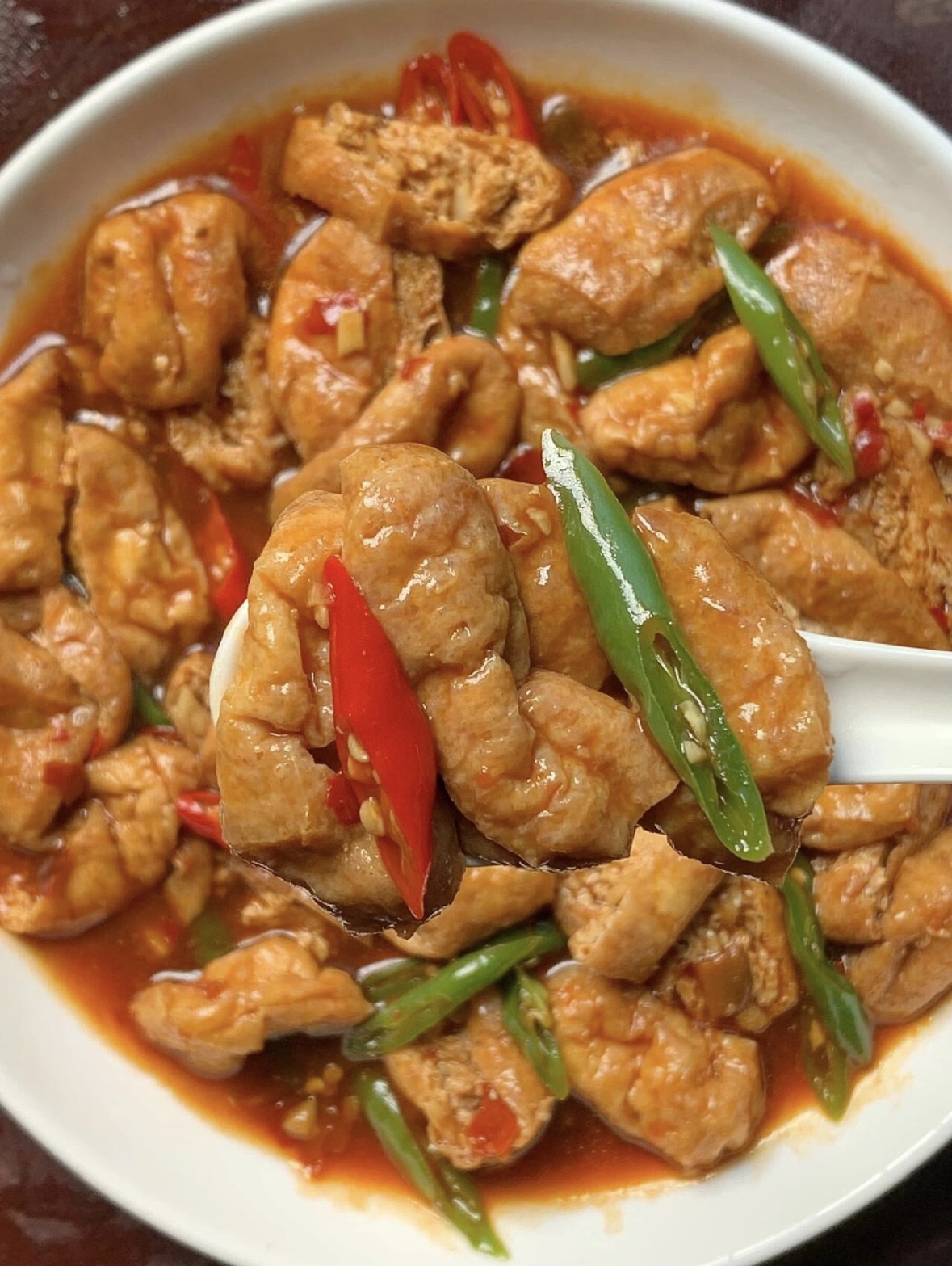 所以,别再把豆泡只留给火锅了!今晚就试试这盘辣炒小宇宙,保证你吃完第一句话是“米饭怎么没了?”第二句话是“明天我还要!”记得多煮两杯米,因为汤汁的杀伤力,真的连锅底都不放过。