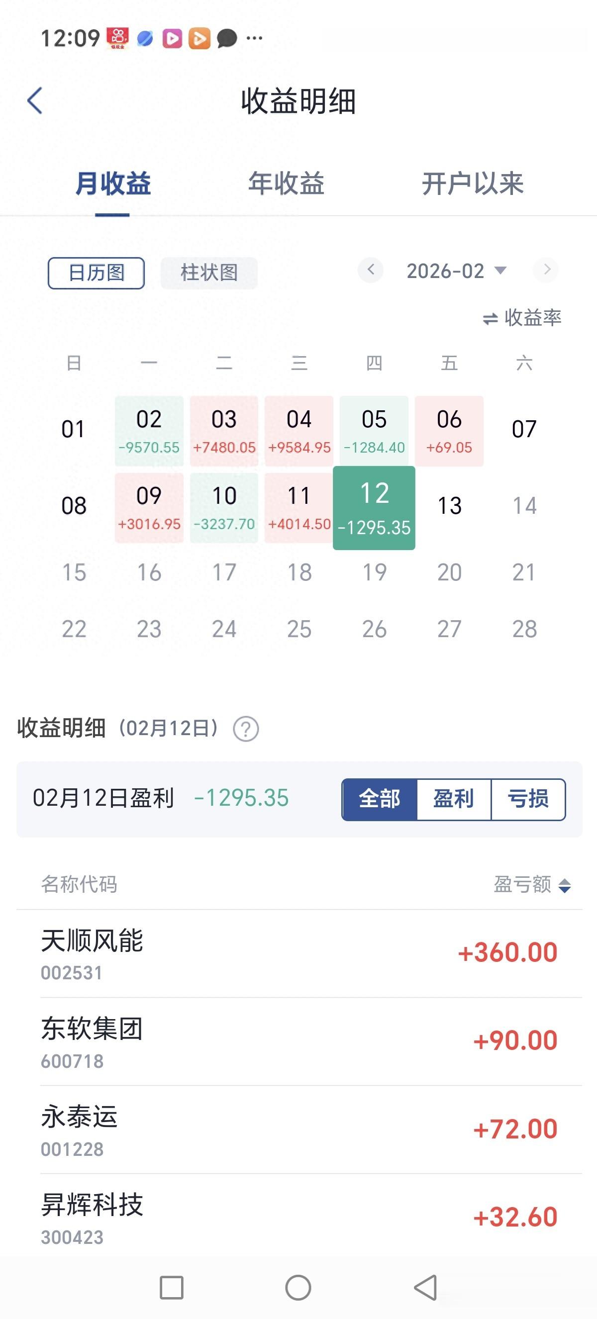 昨天2月12日,看大盘还是维稳走势就没有操作,但是收盘的时候,当日账面还是出现亏损。