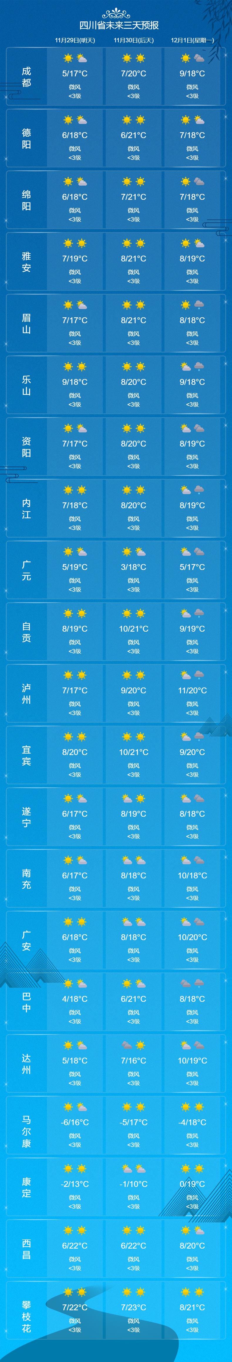 顺便说一句,虽然已到11月底,但四川盆地还没入冬。各位,请珍惜深秋的阳光吧!可靠消息,12月初——下周,四川将迎来一次降温降水天气过程。