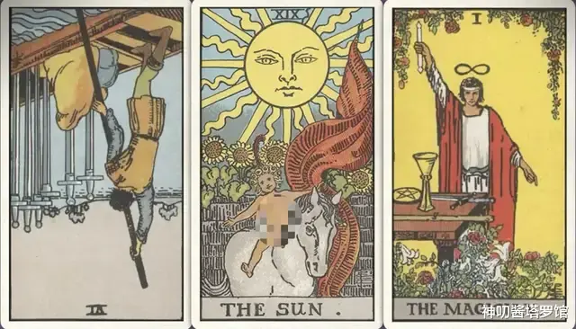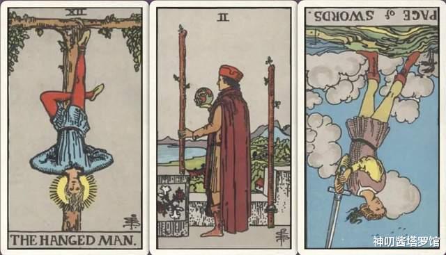 牌:倒吊人+ 权杖二+ 宝剑侍从-