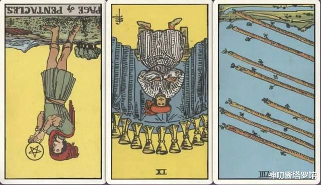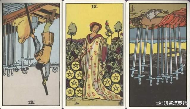 牌:星币侍从- 圣杯九- 宝剑八-