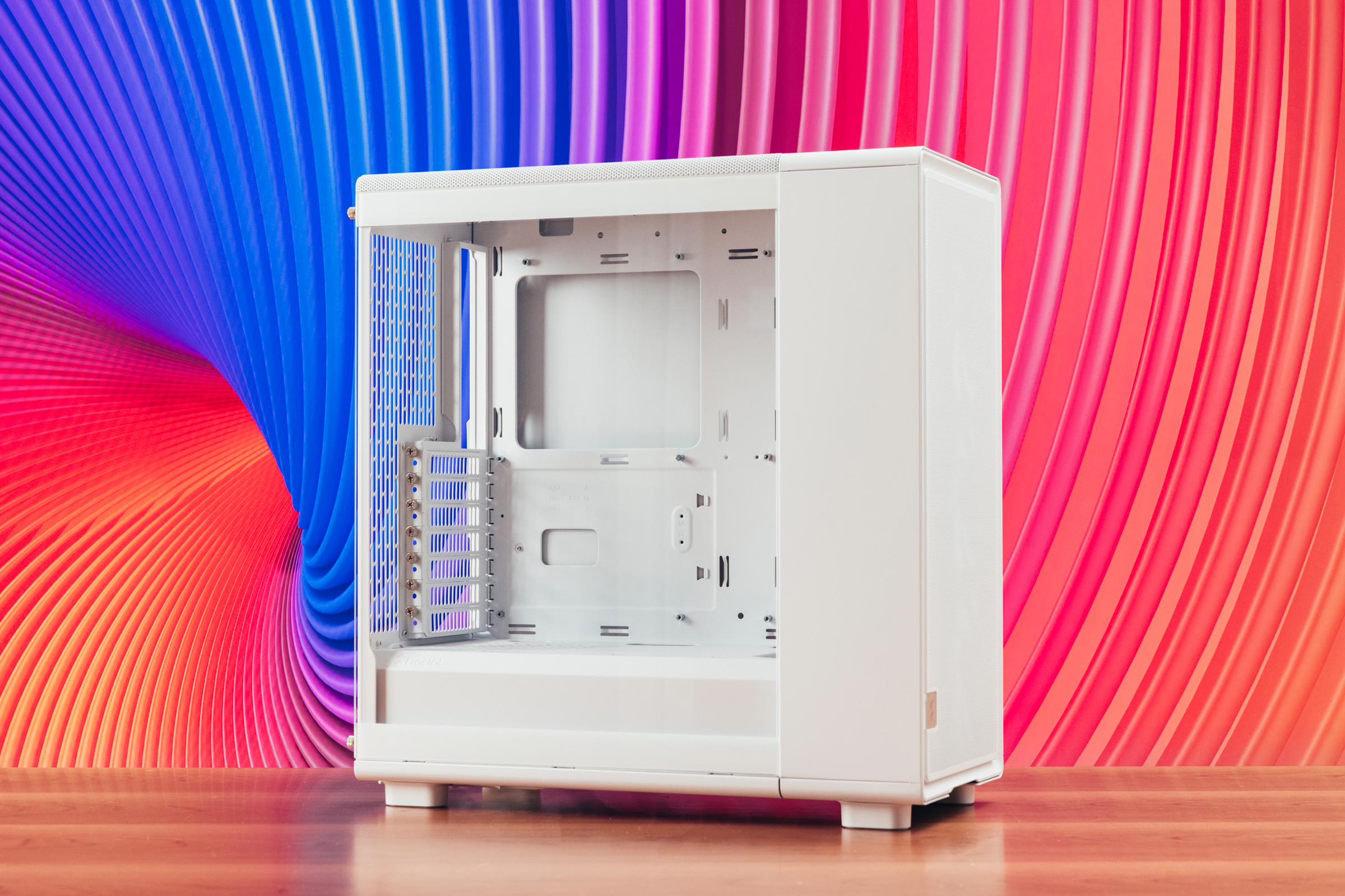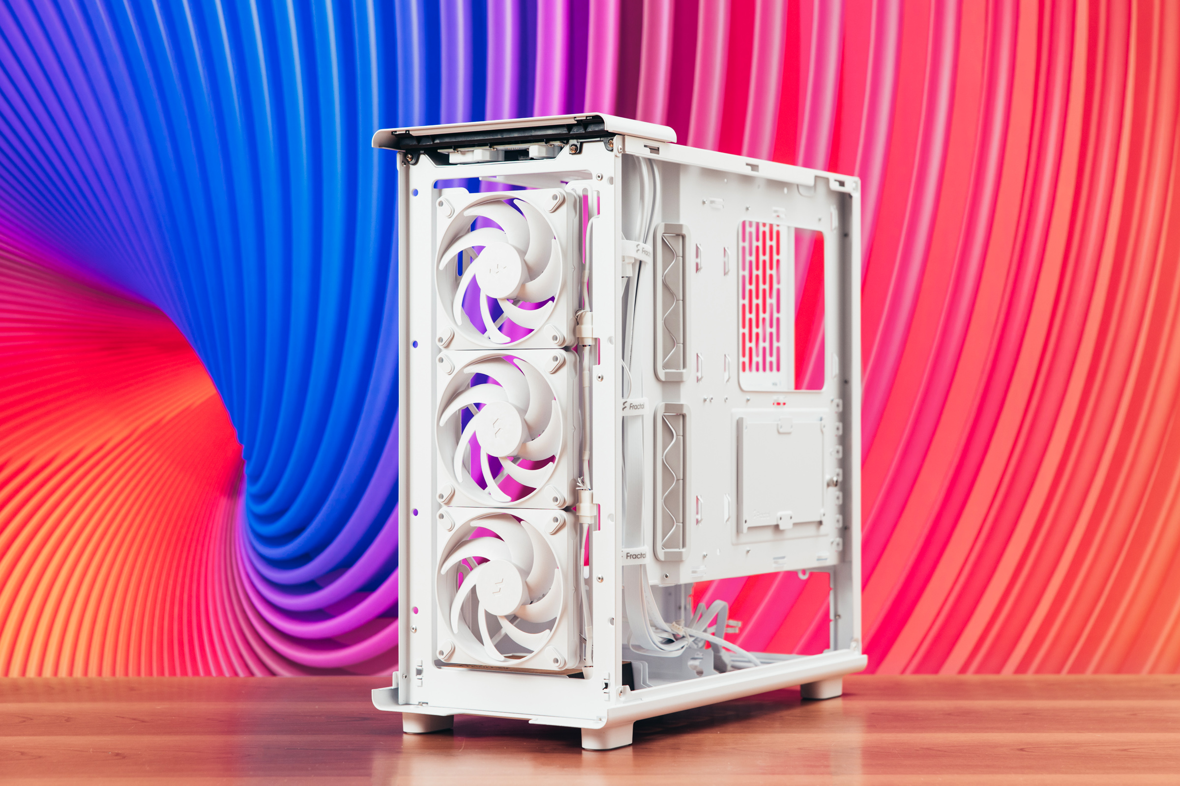 分形工艺 Epoch是最新推出的机箱,主打一个四四方方,四平八稳,它和North其实整体设计非常接近,不过相对于North白化更彻底,同时前面板也更为简约,另外还预装了3把高性能的Momentum 12风扇。