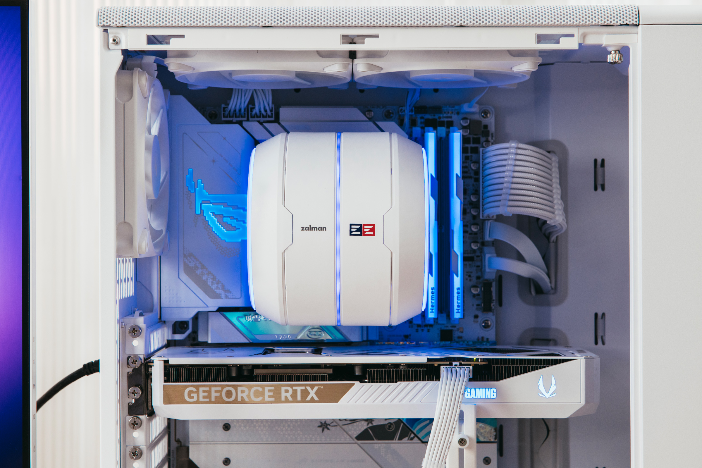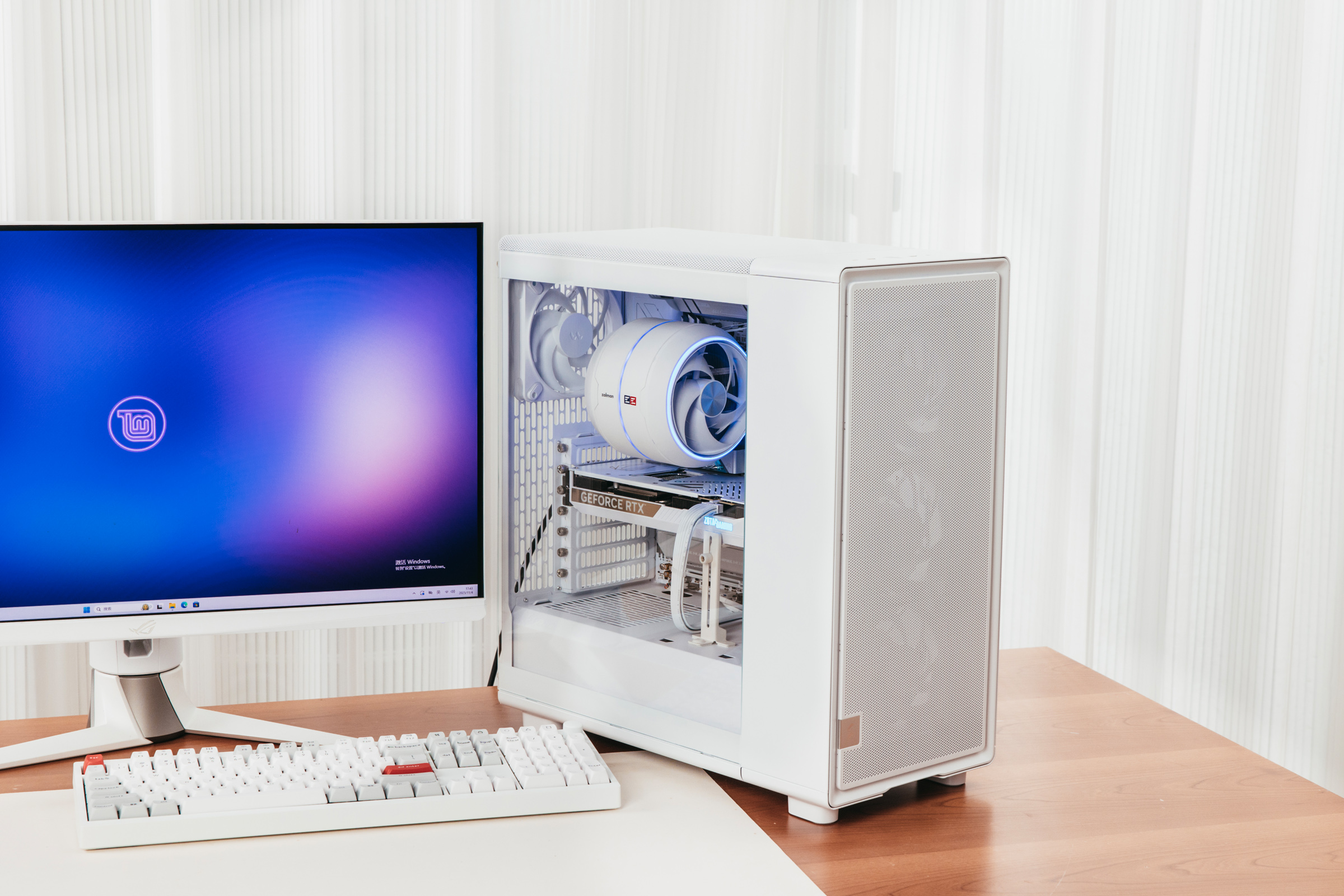 关于本次其他硬件:主板X870吹雪S、 内存宏碁掠夺者Hermes冰刃 DDR5 8000 24G x 2、显卡索泰 RTX 5070 Ti 16GB SOLID CORE OC WHITE,电源来自分形新发布的Ion3 Gold 金牌1000W,散热思民ZET5,非常有个性的散热器,搭配了分形的三颗无光的Momentum12风扇。