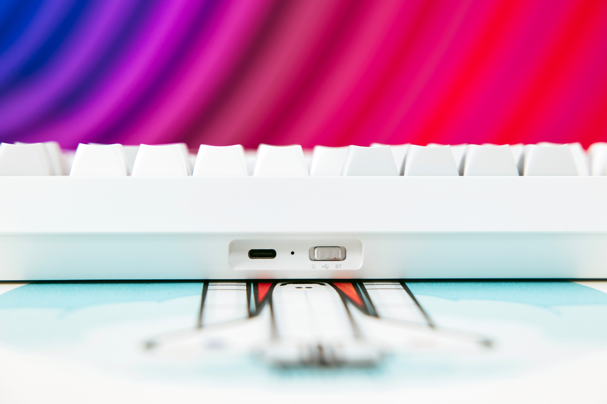 键盘本身为三模方案,支持蓝牙无线和有线,蓝牙最多同时配对3台设备,自研的灵犀天线在复杂的无线环境下稳定性有了保障,有线和2.4G无线模式下支持双8K回报率,延迟0.125ms。