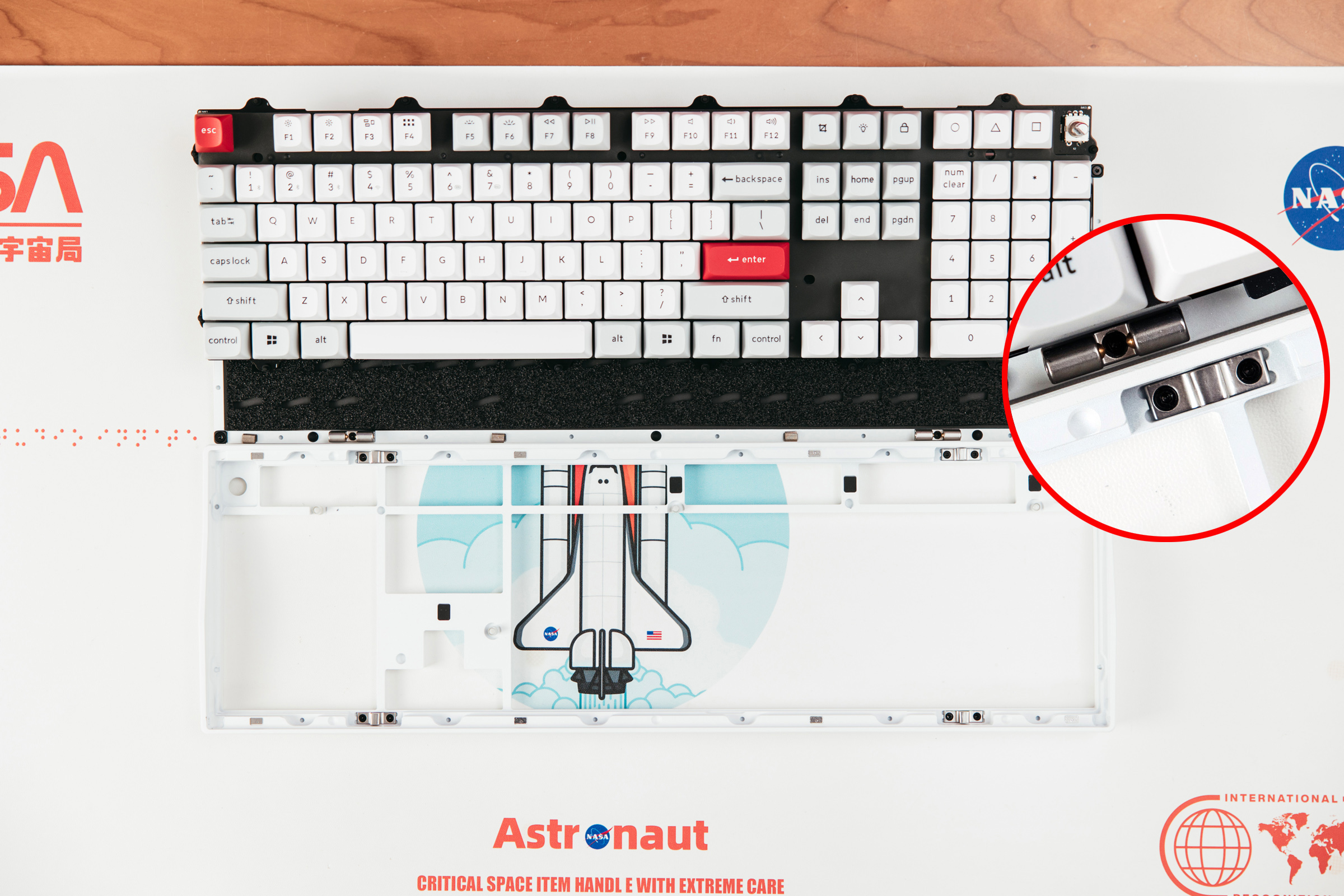 碰珠快拆结构,可以在拔下金属旋钮后轻松打开,方便清灰和更换配件,或者是替换内部材质,毕竟它也是五层消音填充的Gasket结构,可以按需订制自己想要的轴下垫、夹层泡棉、夹心棉和底垫等垫片。