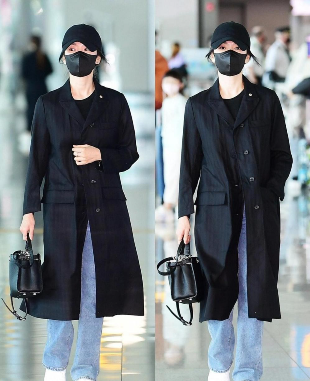 再来说说黑大衣的长度,女神宋慧乔穿上后衣摆在膝盖之下了,此种长度的衣服刚好能帮微胖姐妹将大腿处的肉肉遮住,这也是为何中长款宽松大衣流行度高的原因之一。脸上戴口罩基本有这么几种情况,其一,女明星为了不被拍到全脸,会选择戴口罩;其二,在疫情期间,大家出门为了避免被传染,则会戴它;其三,冬天戴口罩的人很多,有的口罩面料厚,有的则薄些,目的主要是想防止脸被冻伤、感冒。