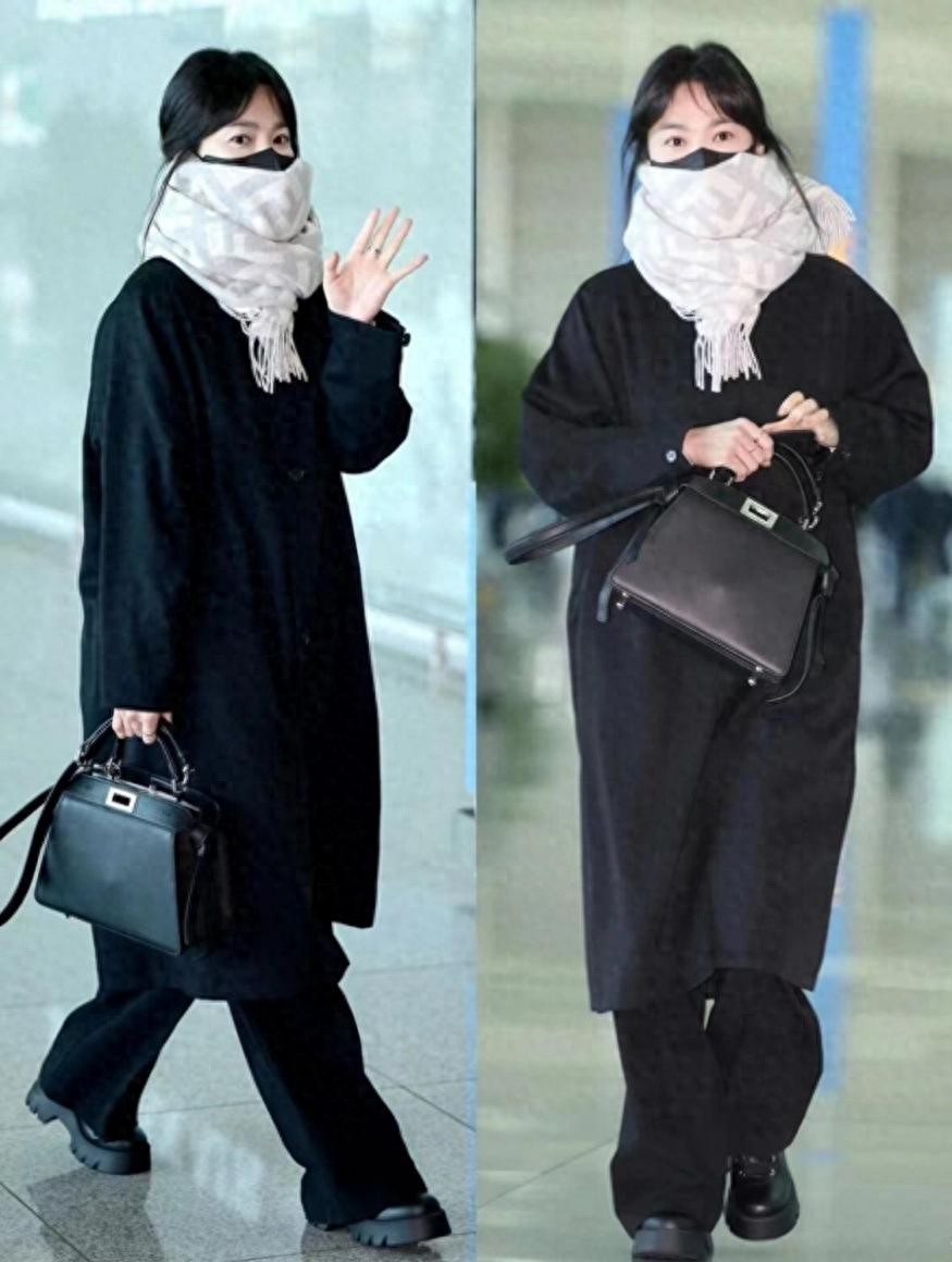 黑色大衣如何搭是一个值得仔细思考的问题,单品选对了,那么既能展现个人品味,还能提升自己的气场;可一旦选错了,穿着者可能会看上去有臃肿感。今天,带大家看一下宋慧乔两组黑大衣穿搭,共同点是无论是大衣还是裤子,面料都具有绝佳的垂坠感。当然区别也是有的,不光体现在裤子颜色上,还有围巾的设计细节。