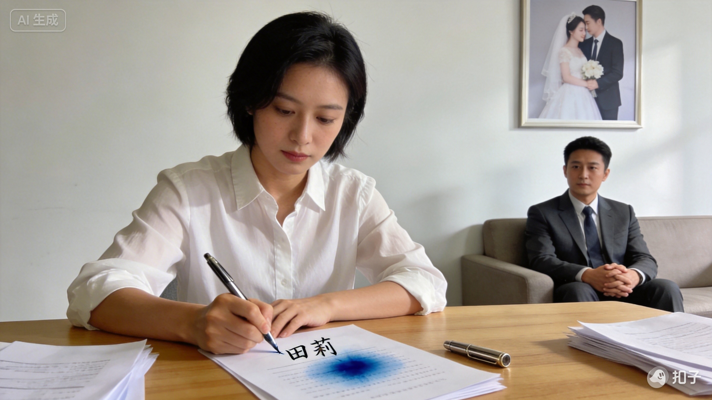 离婚协议书上签下名字那刻,王乾的手很稳,笔尖划过纸张发出沙沙的轻响,像春蚕啃食桑叶。田莉的手却在抖,墨水在“莉”字最后一笔洇开一小团蓝晕,像滴未落尽的泪。