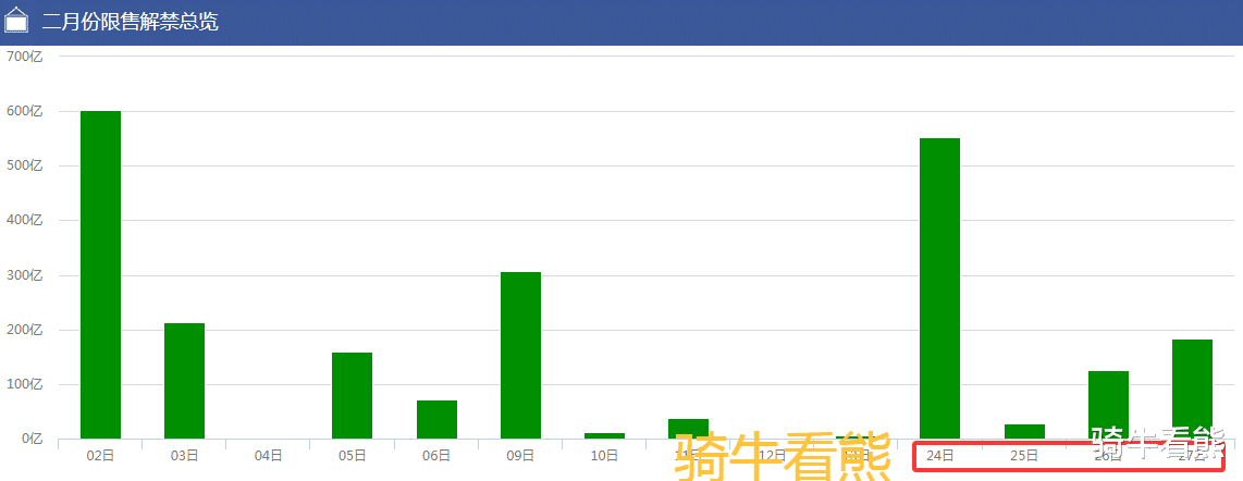 2月24日(周二)、2月26日(周四)、2月27日(周五)是下周解禁的高峰期,并且有部分个股解禁比例已经超过了70%,特别是2月24日(周二)的扬州金泉、坤泰股份;2月26日(周四)的多利科技。一定要注意这些个股不要“踩雷”。