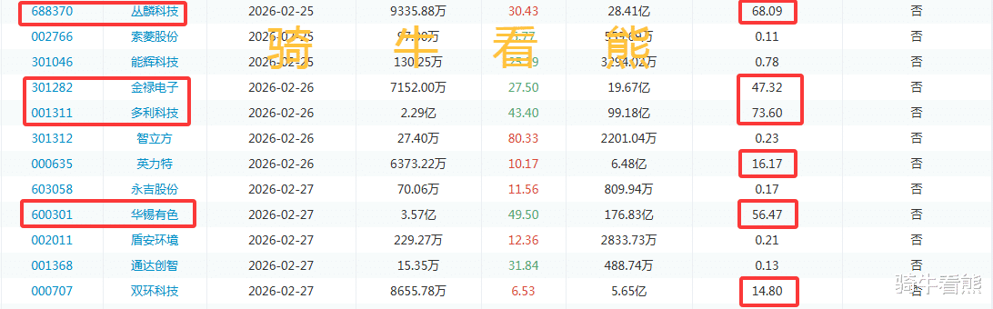 2月26日(周四)金禄电子解禁比例达到47.32%;多利科技解禁比例达到73.6%。