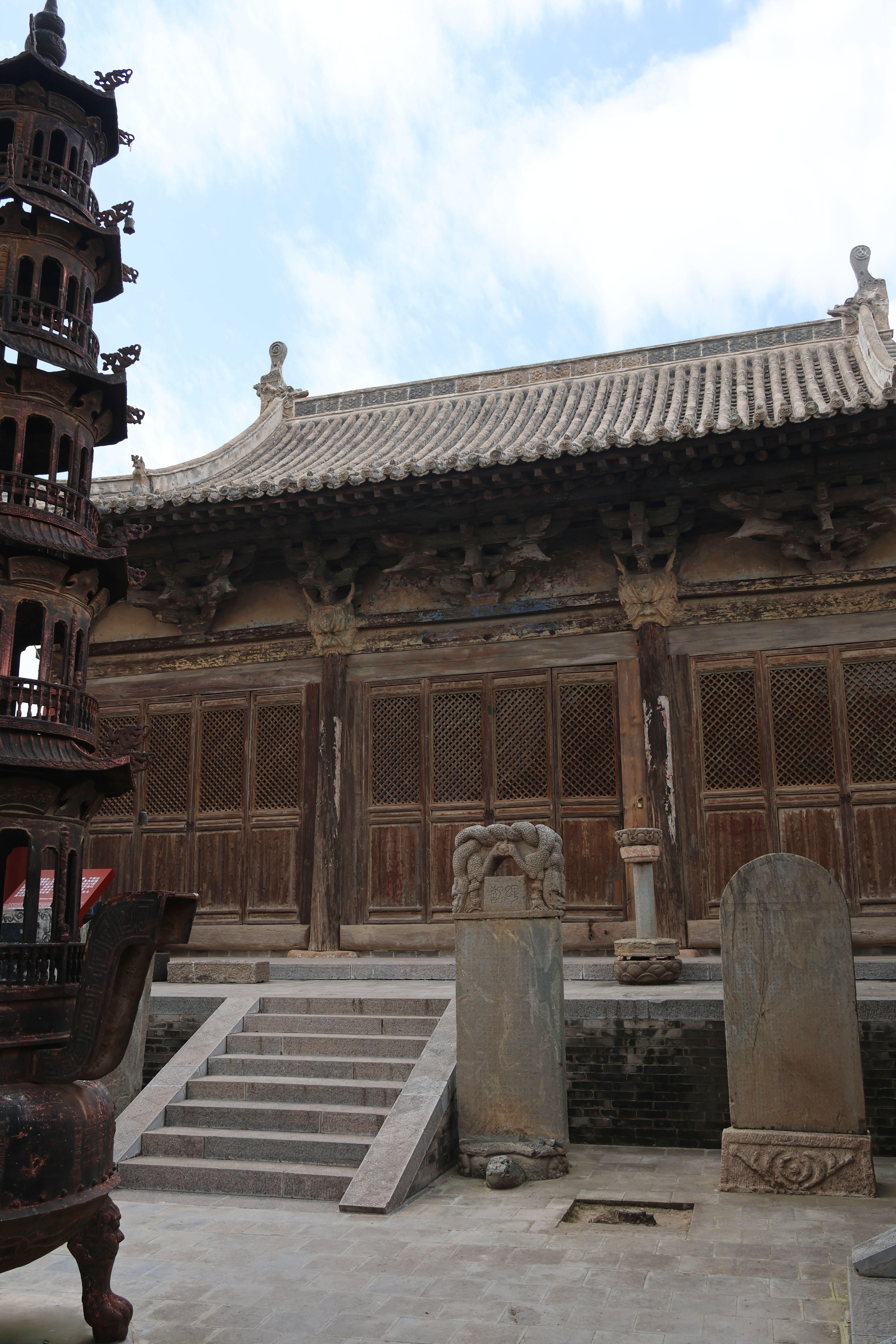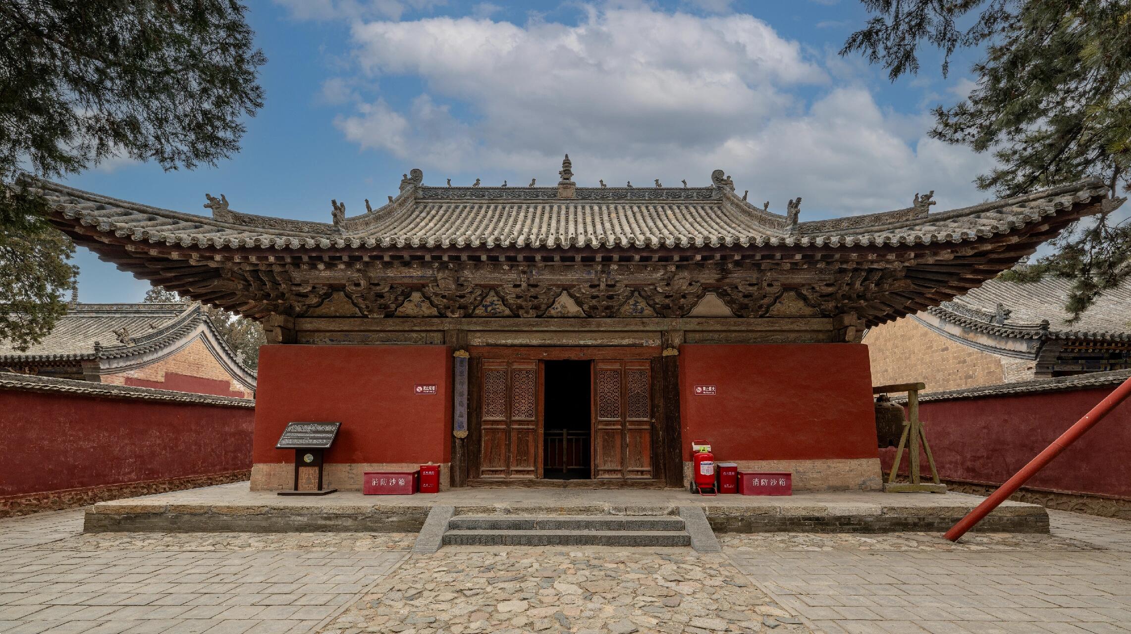 走出大雄殿,阳光洒在古寺的砖瓦上,光影流转间,毗卢殿的悬塑、大雄殿的壁画与彩塑依旧在脑海中挥之不去。这座藏在乡间的古寺,没有华丽的修饰,没有响亮的名号,却凭着明代工匠们的智慧与技艺,凭着跨越千年的历史积淀,成为了艺术史上的瑰宝。它与晋南的永乐宫壁画并称“南北双珠”,却始终保持着低调内敛的姿态,仿佛一位沉默的智者,在岁月中静静等待着懂得欣赏的人。在这里,建筑、壁画、彩塑不再是孤立的艺术形式,它们与历史传说、民间信仰、生活细节融为一体,构成了一个完整的文化空间。站在寺门外回望,古寺的飞檐在天空中勾勒出优美的弧线,让人忍不住思考:在快节奏的现代生活中,我们该如何守护这些珍贵的文化遗产?如何在这些沉默的艺术品中,读懂古人的智慧与情怀?而这些跨越数百年的壁画与塑像,又将在未来的岁月中,向人们诉说着怎样的故事?
