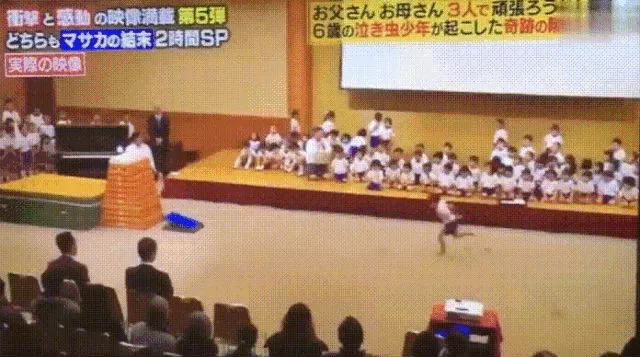 在典礼上,他挑战了一项以前自己从未成功过的项目——10段跳箱。
