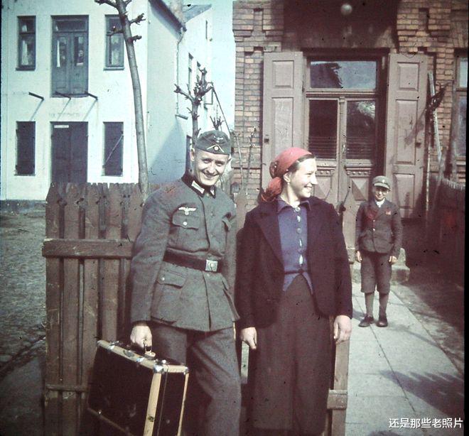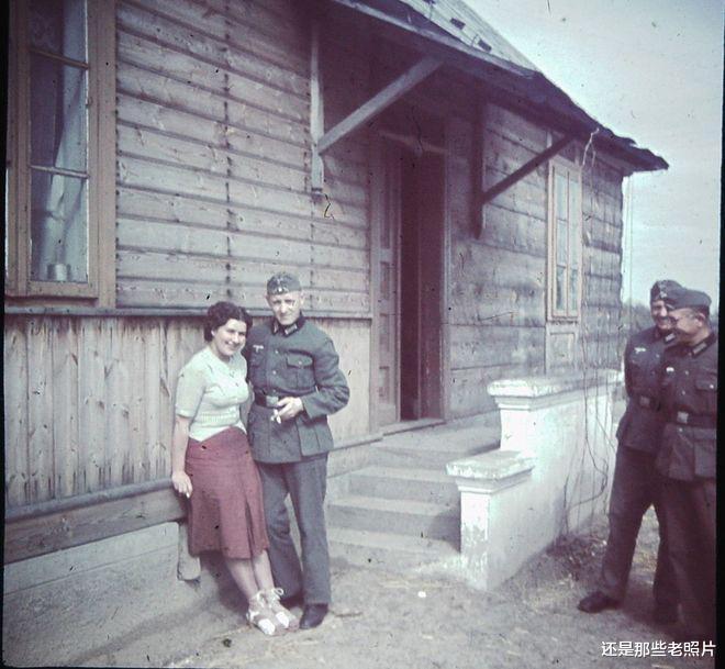 1939年,入侵波兰的德国士兵和一名波兰女子,表情很是亲热。