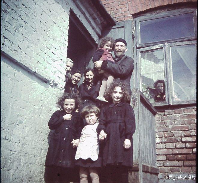 一个犹太人家庭正在面对街头微笑。好吧,德国大兵很快就会温暖他们的。