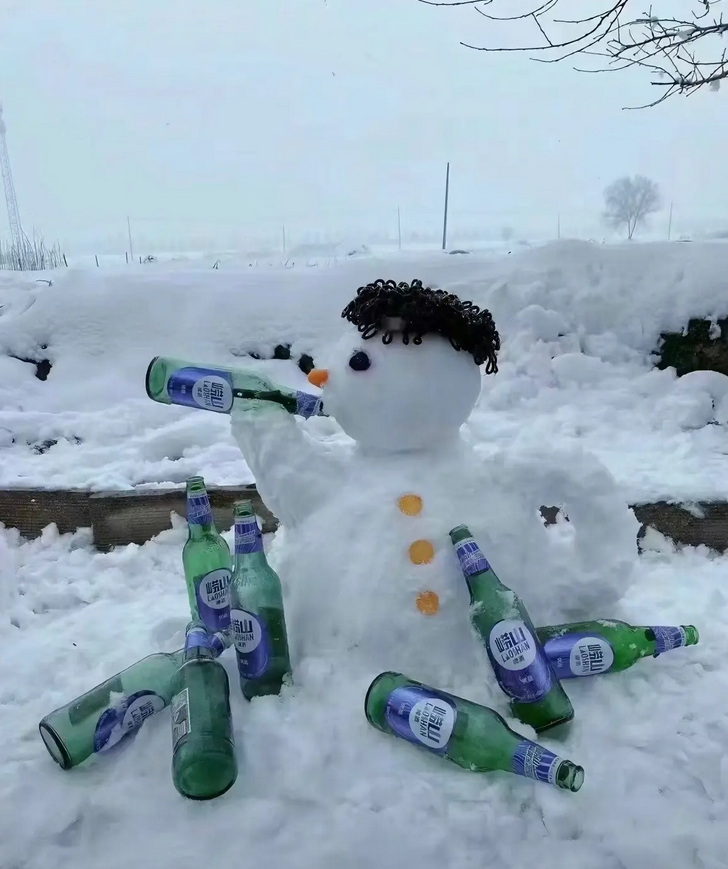 18.这是越喝越结实啊,属于是千瓶不倒了,到最后雪人估计变冰人了。