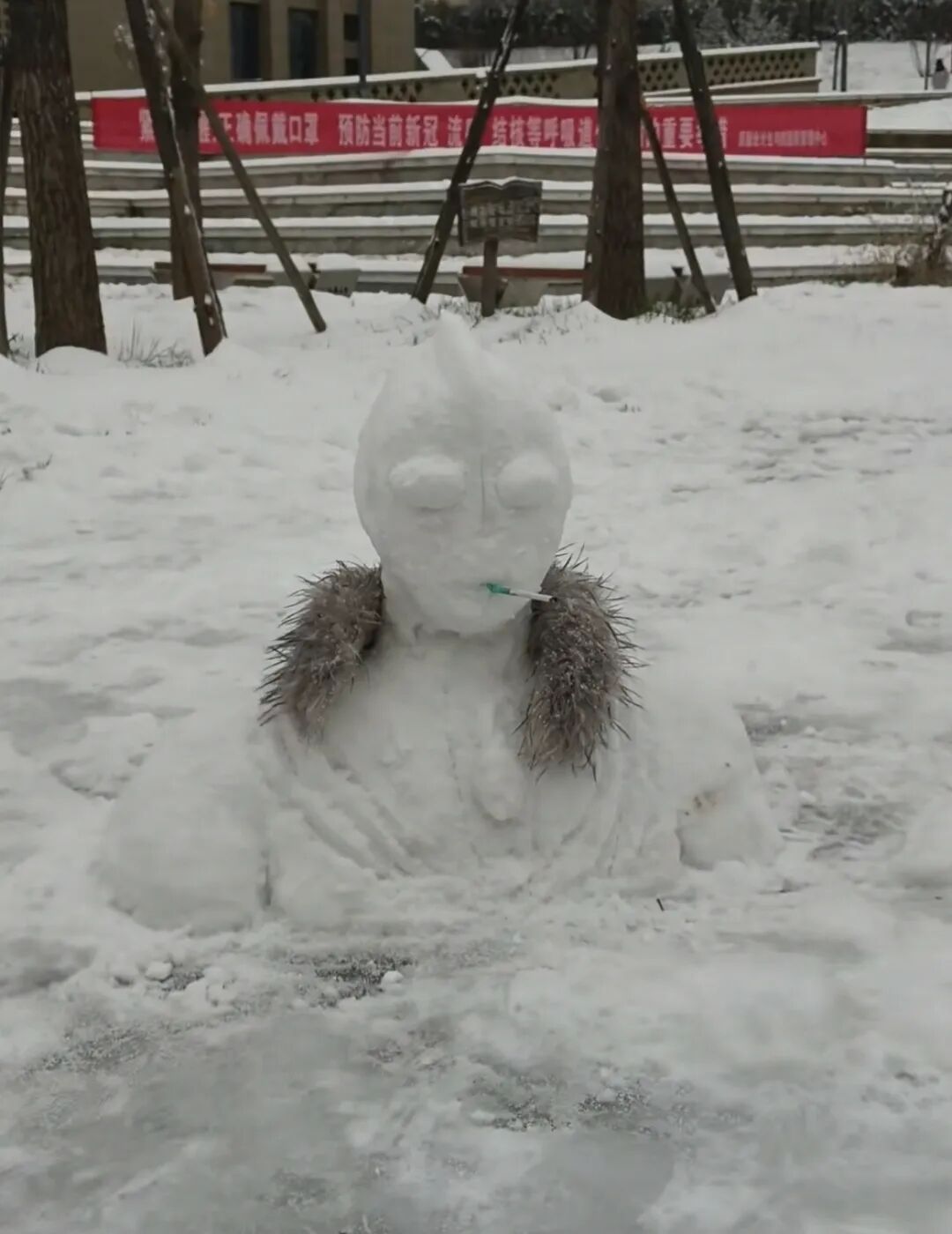 16.这是谁堆的雪人奥特曼大哥?给他点上啊!