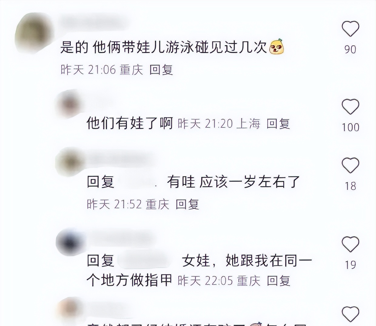 更令人意外的是,评论区有知情网友爆料称:“他们女儿至少一岁半了,之前还看到一家三口去游泳馆。”