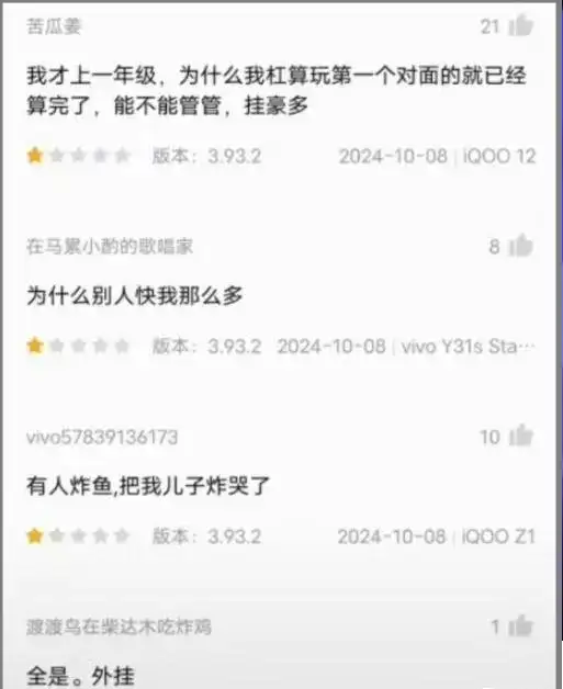 这场“低数大战”本来是孩子们的天地,结果被大学生们打成了一个成年人VS成年人的竞技场。小学生们的自信心受到了严重打击,纷纷前往应用商店留下了一星差评,抱怨游戏体验极差,无法再轻松获胜。
