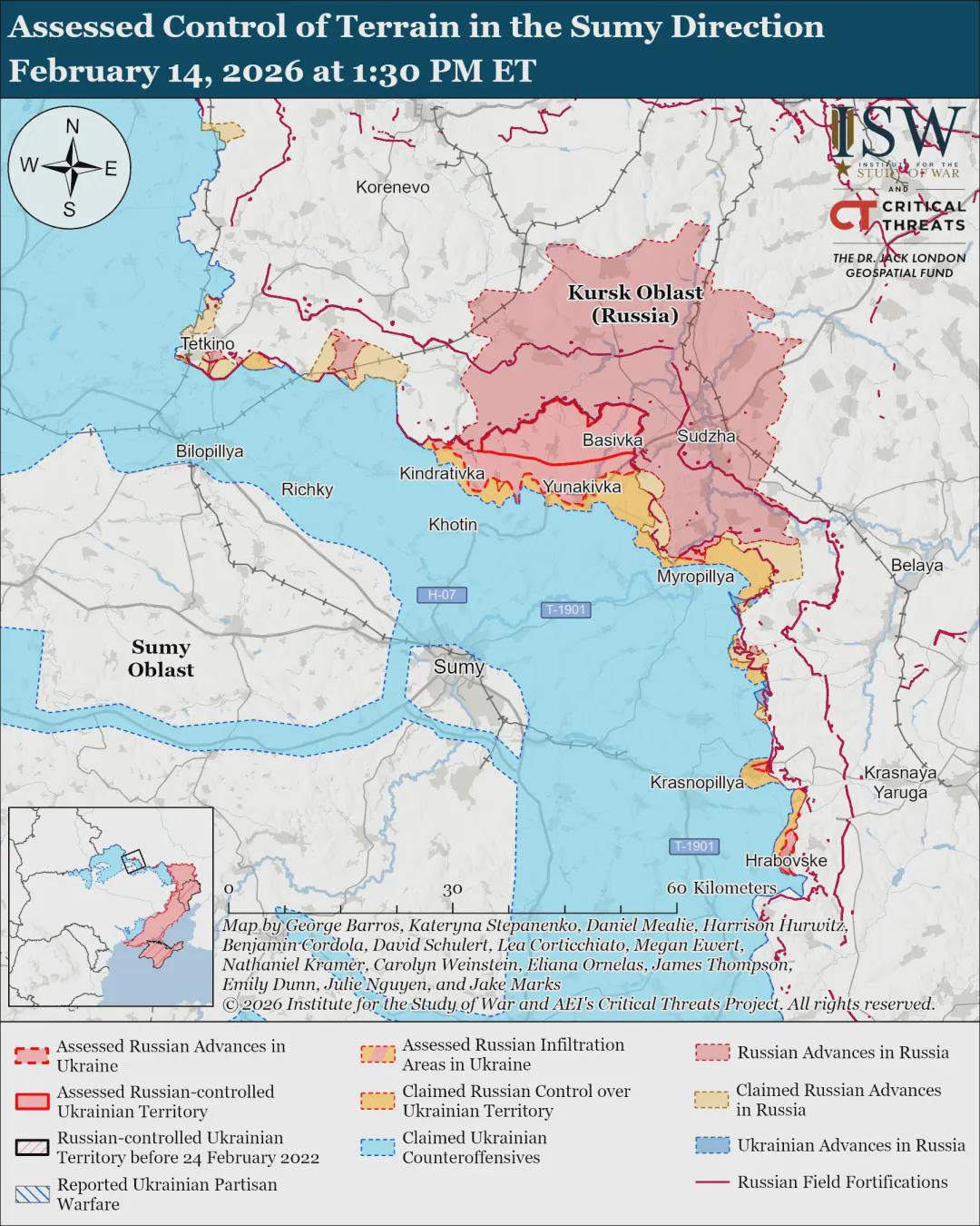 根据美国战争研究所2月14日发布的最新情报,主要有以下关键信息: