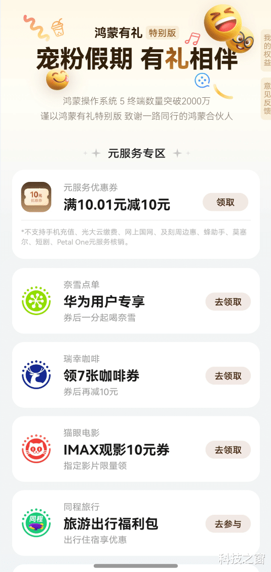 曾经有一个真诚的“鸿蒙有礼特别版”活动放在我面前,我没有珍惜,等到假期结束才后悔莫及。如果上天能给我一个再来一次的机会,我一定会对那张优惠券说三个字:我要用!如果非要给这份心情加一个期限,我希望是——每天都能领!