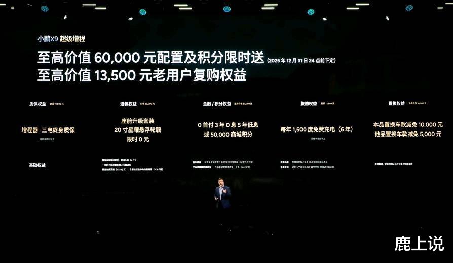 小鹏汽车同步推出多重上市权益及丰富购车礼遇:即日起至2025年12月31日24点前下定,可享受至高价值60000元配置及积分权益: