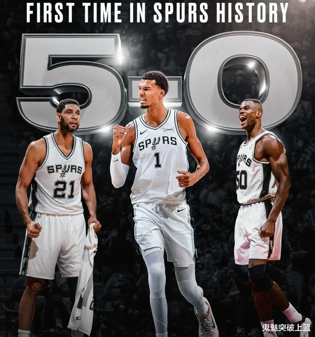 毫无疑问,这支由文班亚马+卡斯尔+瓦塞尔+哈珀+凯尔登五大年轻人组成的青春版马刺,俨然已成新赛季狂野西部的最大黑马!需要强调的是,5胜0负队史最佳开局还是在当家后卫达龙福克斯伤停情况下所达成。