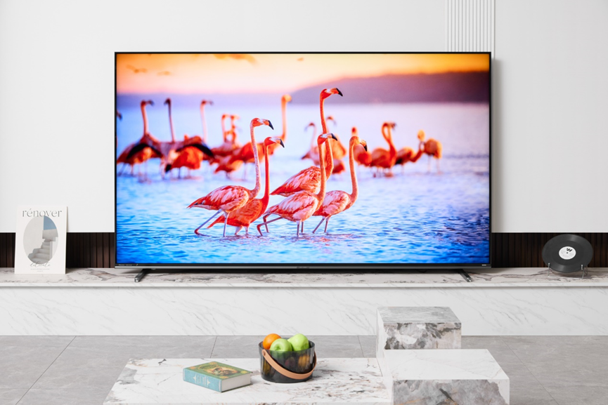 电视送到家安装好,开机的那一刻全家都直呼惊艳!100% BT.2020超高色域搭配信芯AI画质芯片H7的108bits控色精度,把画面的细腻度拉到了极致。我特意调出了去年春晚的舞蹈片段来试机,舞台上的中国红浓郁纯正,大屏幕的绚烂光影、服饰的精致纹理直接清晰加倍,明暗过渡丝滑自然,完全没有普通电视的泛白和光晕问题,仿佛把春晚现场搬回了家。