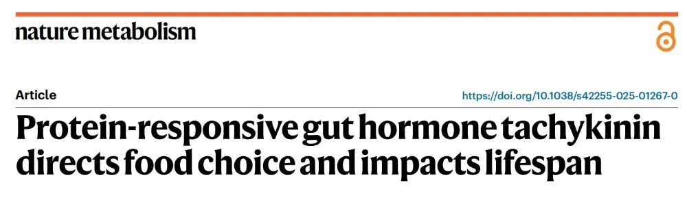 2025年6月,Nature Metabolism杂志发表了一篇题为“Protein-responsive gut hormone tachykinin directs food choice and impacts lifespan”的文章,该研究揭示了速激肽(Tk)这一肠道激素在蛋白质摄入后的调节机制。研究发现,Tk在果蝇和小鼠中响应蛋白质摄入,通过靶蛋白(TOR)和瞬时受体电位A1(TrpA1)信号通路调节食物选择和睡眠模式,甚至影响寿命。这一发现不仅填补了当前研究的空白,还为开发针对蛋白质摄入特异性的治疗策略提供了新的靶点,有望突破现有临床治疗的瓶颈。