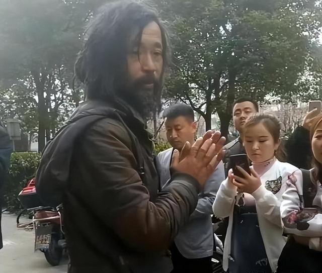 2019年,一位头发凌乱、衣衫不整的流浪汉,正对着镜头侃侃而谈。
