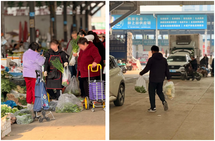 比起传统的菜市场,这里的一切都大得超出认知,一共十几个批发棚,哪怕是散客,也能开着车直达棚下,再不济也得拖着买菜小车,才方便搬搬扛扛。