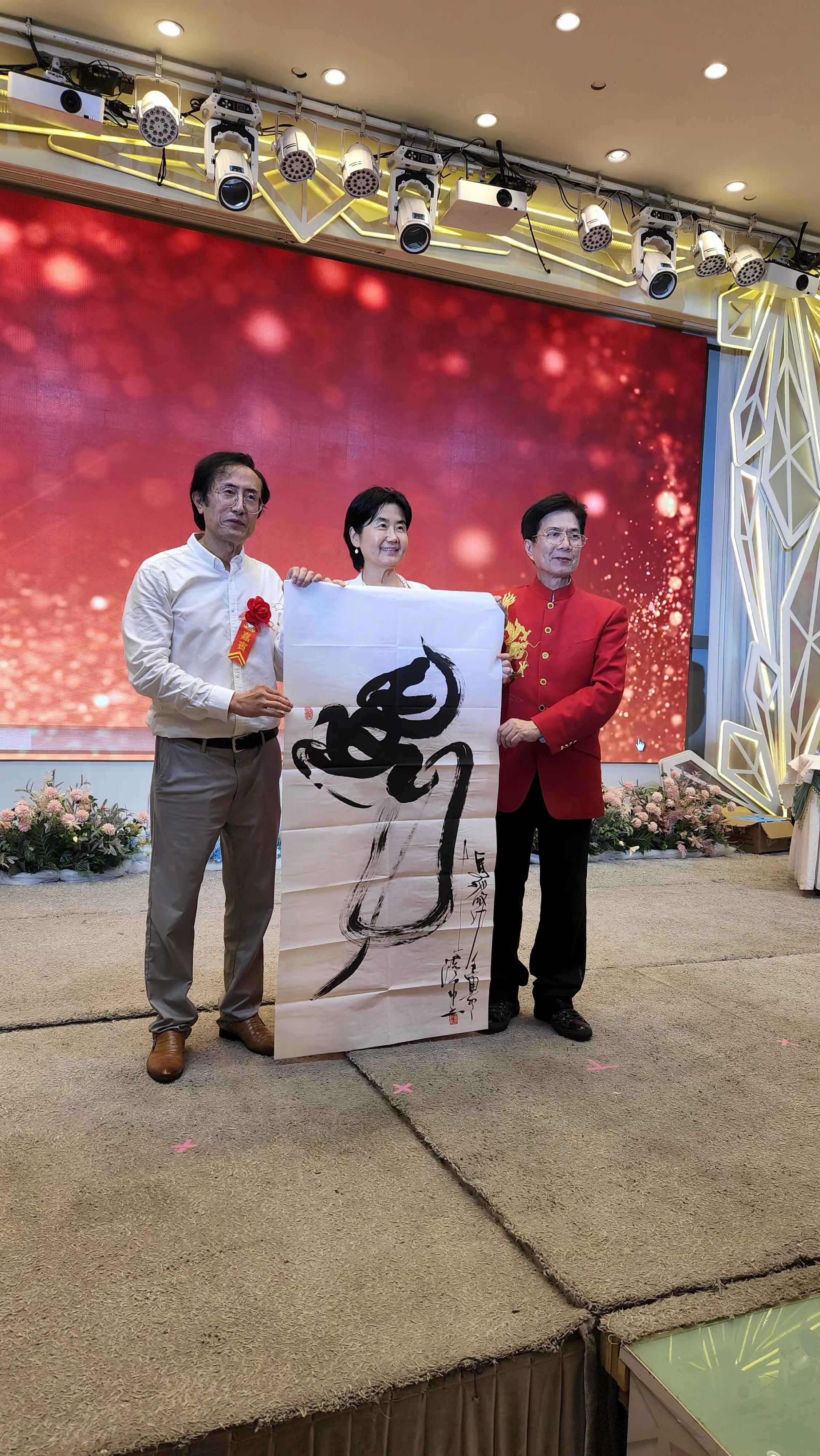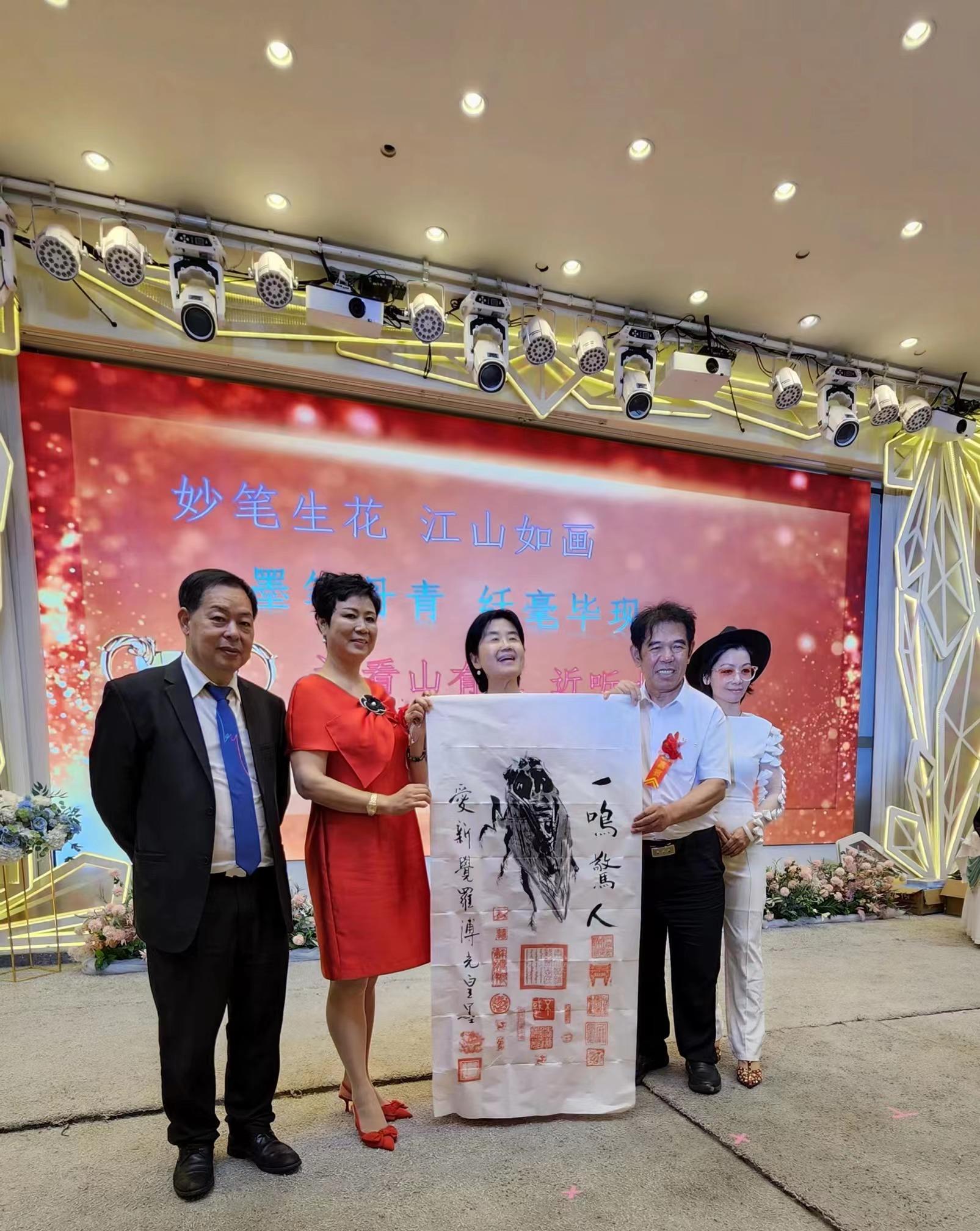 世界华人协会总干事兼会长特别助理邵志权先生将百名名書画家展其中郭晋才作品捐贈给大會作賀禮!