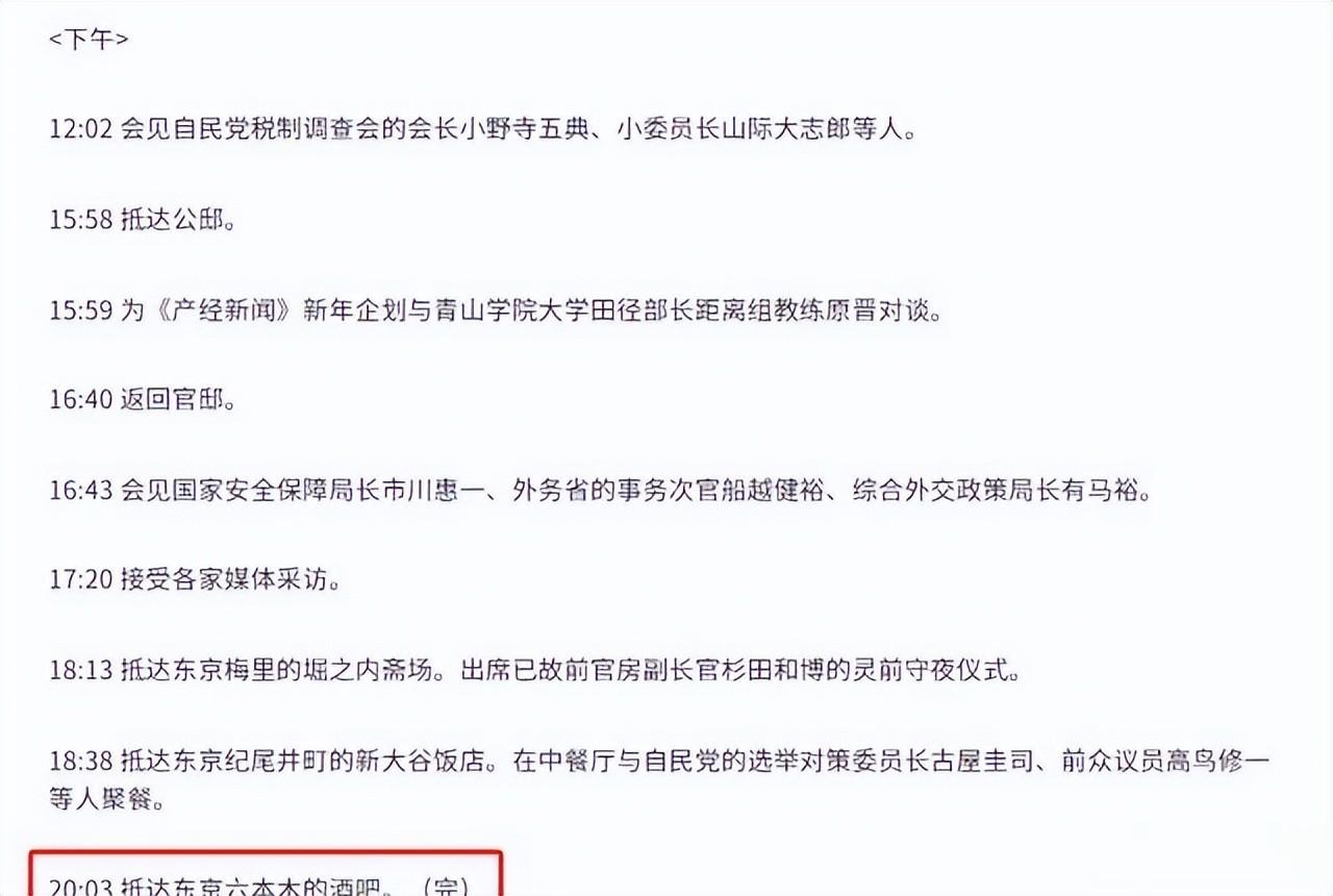 聚餐结束后,晚上8点03分,她直接去了东京六本木的卡斯克斯特伦斯酒吧,跟官房副长官尾崎等人继续谈话。媒体跟踪报道到这里,就没有更进一步的细节了。