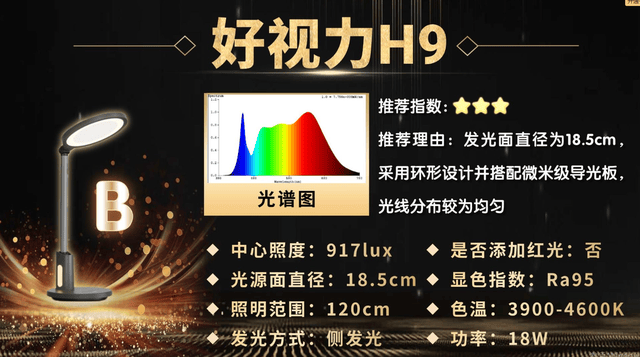 儿童护眼台灯什么品牌最好?好视力H9采用全光谱光源,并配有纳米导光板和防眩光膜,多层过滤让光线更加柔和,不容易刺眼。显色指数 Ra95,颜色还原自然,看书和写作业基本够用。不过这款灯光线稳定性一般,长时间使用有时会出现轻微频闪,影响眼睛舒适度。使用久了还可能会听到轻微电流声,操作和体验感略打折。价格上波动较大,保值性一般,建议关注活动入手。