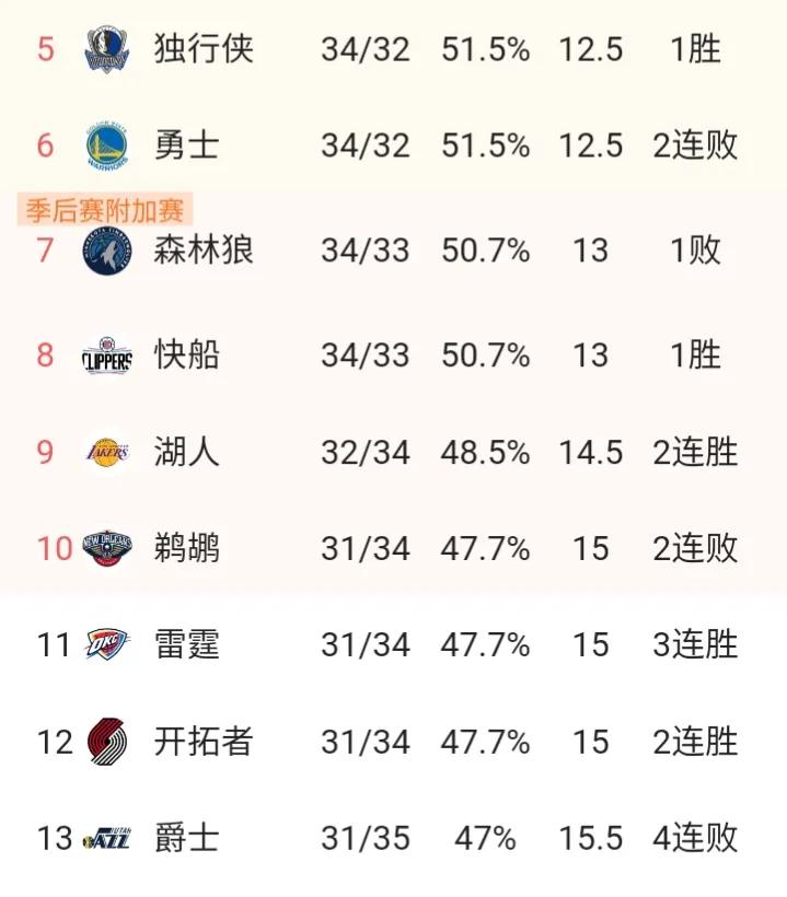 魔鬼赛程来袭!勇士队季后赛不稳,很可能跌出附加赛区 本赛季勇士队余下赛程对手一览 灰熊 雄鹿(主场) 太阳(主场) 快船 老鹰 灰熊 火箭 独行侠 76人(主场) 森林狼(主场) 鹈鹕(主场) 马刺 掘金 雷霆(主场) 国王 开拓者 本赛季勇士队还剩16场常规赛,从上可以看出,6主场10客场。而勇士队也是全联盟客场战绩最差的球队之一,目前7胜25负,胜率仅仅21.9%。虽说主场胜率高达79.4%,不过6个对手都不是省油的灯。联盟第一的雄鹿,四巨头坐镇的太阳,东部第三的76人。附加赛甚至季后赛主要竞争对手森林狼、鹈鹕与雷霆,个个都是难啃的硬骨头。此外,勇士队自身也存在问题,维金斯何时回归?普尔神经刀属性,实力一般的替补,羸弱的内线,等等。目前勇士队34胜32负排名西部第6,不过仅仅领先身后的森林狼与快船半个胜场,领先湖人2个胜场,领先鹈鹕、雷霆、开拓者2.5个胜场。总之,勇士队接下来赛程非常艰难,稍有不慎,跌出季后赛区甚至附加赛区。