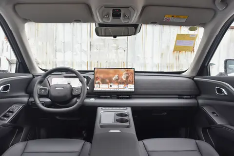 内饰有三种配色可选,我选的是秋褐米,看起来很温馨,特别适合家庭使用。车内大面积都是软性材质包覆,摸起来很舒服,中控台还有波浪条纹状的皮革装饰,提升了整体质感。12.3英寸的液晶仪表和14.6英寸的中控屏组成了双联屏,科技感十足。细节方面也做得很到位,车内有很多储物空间,门板上的储物格能放下大瓶矿泉水,中央扶手箱够深,能装下孩子的零食和湿巾,副仪表台下方的空间还能放老婆的手包。