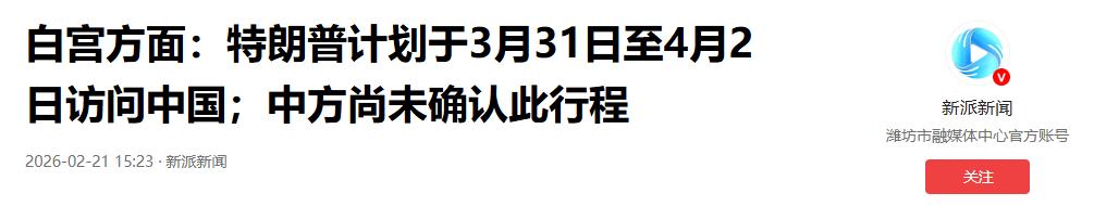 特朗普选在大年初四敲定访华时间,三月底正式来访,就是想趁着这个节点,把中美之间的矛盾摊开谈,解决美国最着急的问题。但中国已经划好了红线,不管谁来谈,都必须尊重中国的立场,遵守公平互利的原则。中美合则两利、斗则俱伤,这是早就被证明的道理,美国这次主动访华,就是认清了这个现实,知道对抗没有出路,只有坐下来平等谈判,才能解决双方的问题。