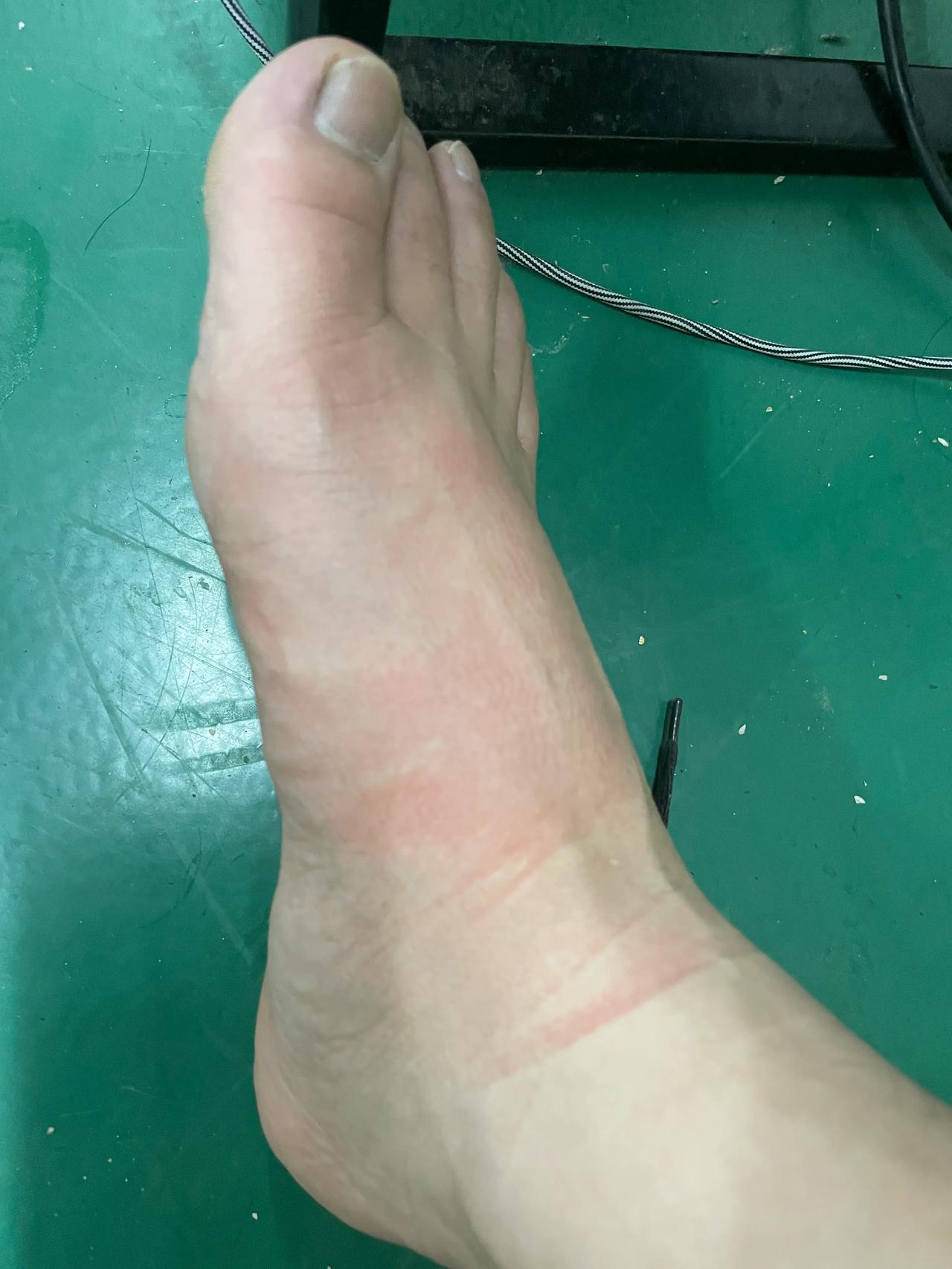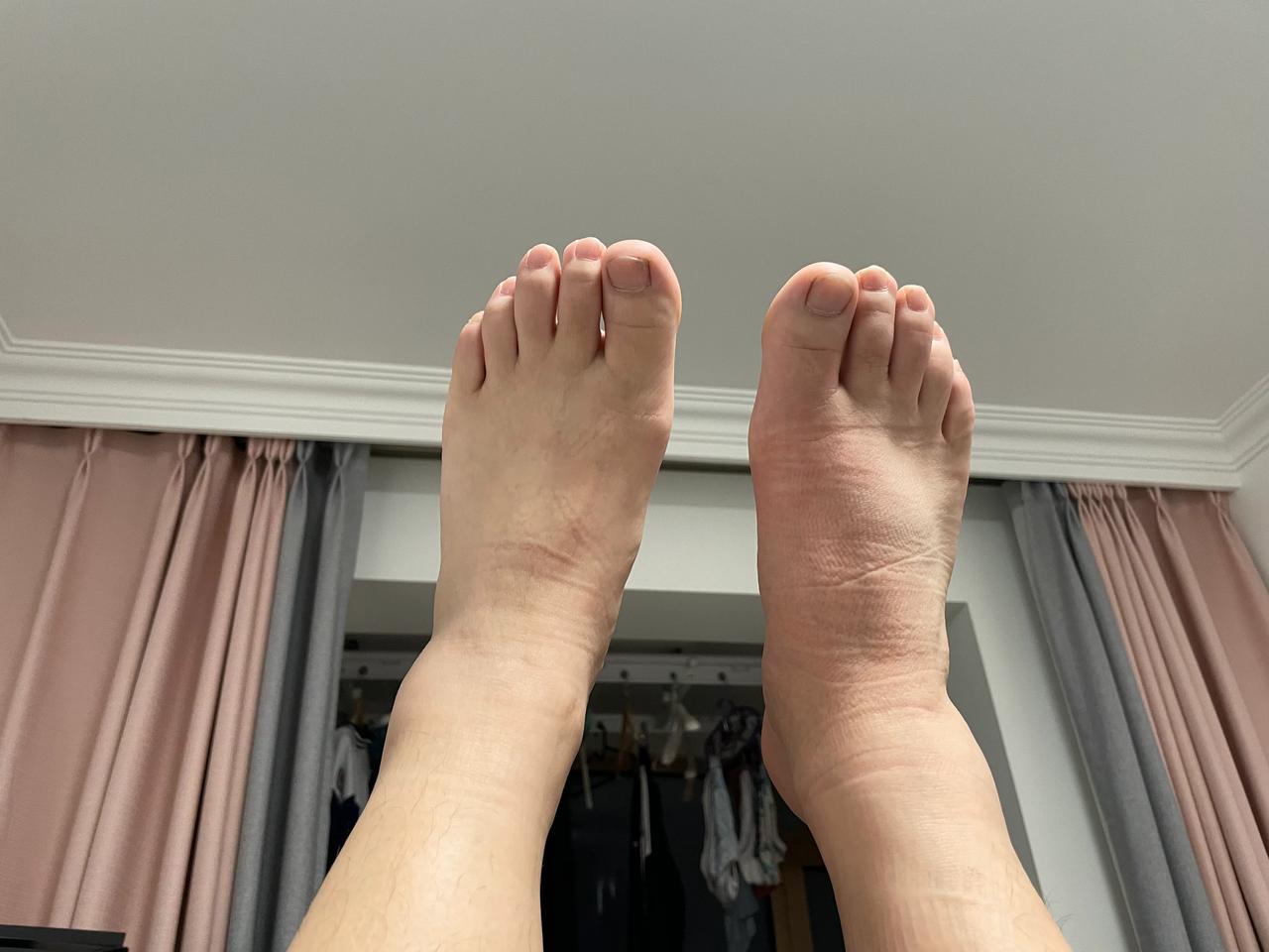 体育锻炼 没做好热身和准备活动的后果 这是24小时内的肿胀变化 这次没崴到脚踝 应该是硬生生的戳到脚面了 所以奉劝大家 进行体育锻炼 要充分热身 特别是有对抗的项目 比如足球羽毛球 充分热身 充分热身 充分热身