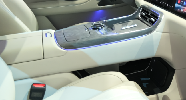 坐进车内,三排平权的空间体验更是让人眼前一亮。2+2+2的六座布局,每一排都没让人将就。第一排主驾座椅有自适应腰托和转向自适应侧翼,开长途时能牢牢托住身体,不累腰;副驾的宠爱椅带无缝腿托,把腿伸开能直接躺成半躺姿势,堪比飞机头等舱。第二排更不用说,53厘米宽的坐垫、7厘米宽的扶手,坐上去特别宽敞,中间18厘米宽的过道,进出第三排完全不用侧着身子。最让人惊喜的是第三排,全尺寸座椅和前两排一样宽大,150°的最大躺倒角度,配合0.15㎡的勃朗峰舷窗,坐在这里既不会觉得压抑,也不会有“被遗忘在后排”的感觉。现场一家三口体验时,孩子在第三排玩玩具,爸妈坐在前两排聊天,互不打扰。而且车内垂直高度有1.3米,就算1米9的高个子坐进去,头顶也还有一拳多的空间,彻底告别顶头尴尬。