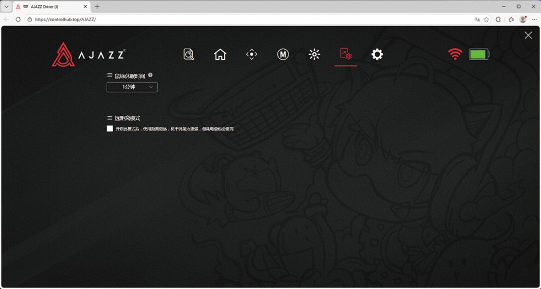 ▲除了休眠时间调整之外,驱动还可以开启远距离模式,使得该鼠标抗干扰能力更强、使用距离更远。
