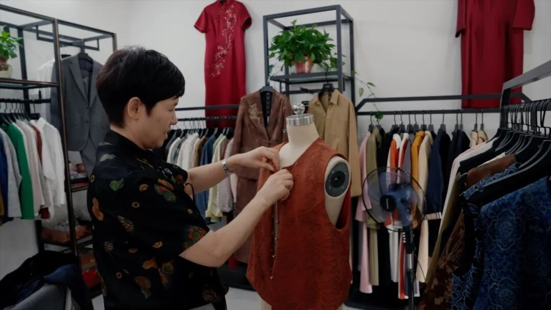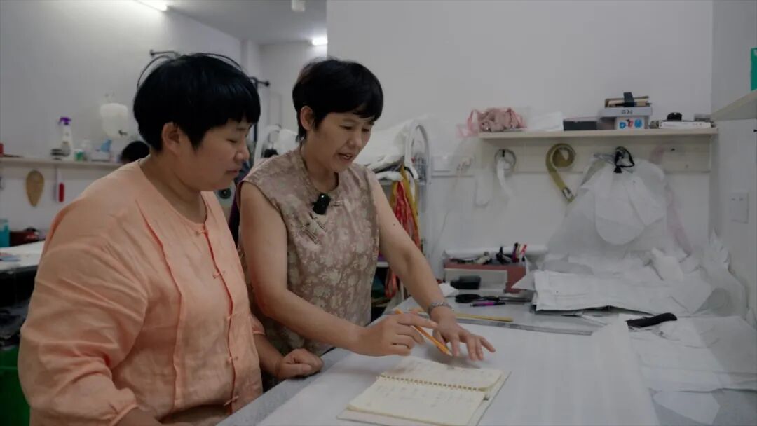 未能继续学业的遗憾,始终是郑小婉前进的动力。谈起刚开始做裁缝的日子,凌晨三四点睡、早晨七点起是家常便饭,甚至连烧一壶水的功夫都能睡一觉。直到身体发出警告,她才结束那种拼命的状态。如今,郑小婉已从当年的青涩学徒成长为远近闻名的定制师傅,徒弟也带出了一批又一批。最热闹的时候,这条街上的六七十位裁缝中,有十位都出自她的门下。现在的团队中还有她的关门弟子——一位从十六岁就跟随她学艺的姑娘,如今也已是两个孩子的母亲。