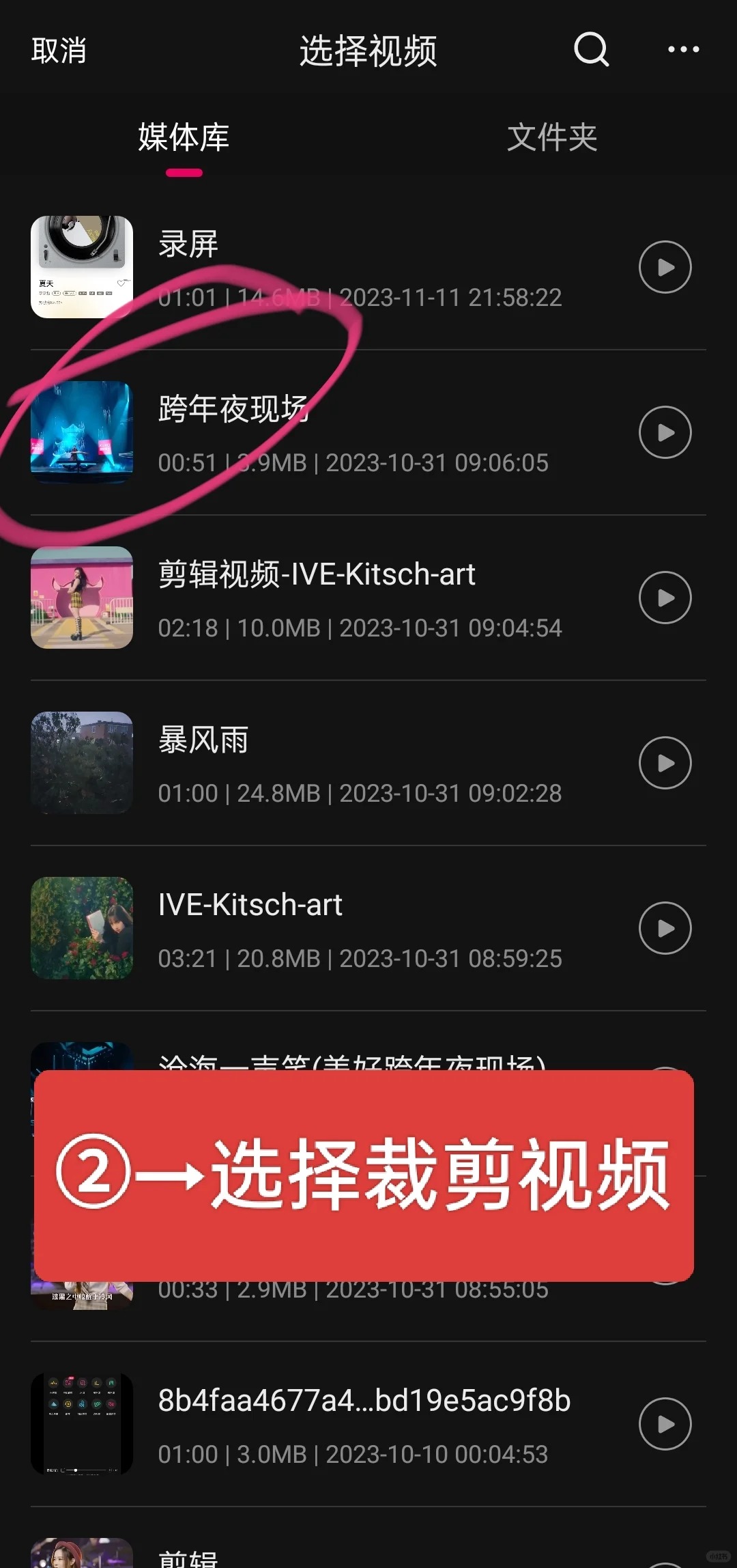 ①:准备需要裁剪比例的视频,将其复制到手机里面