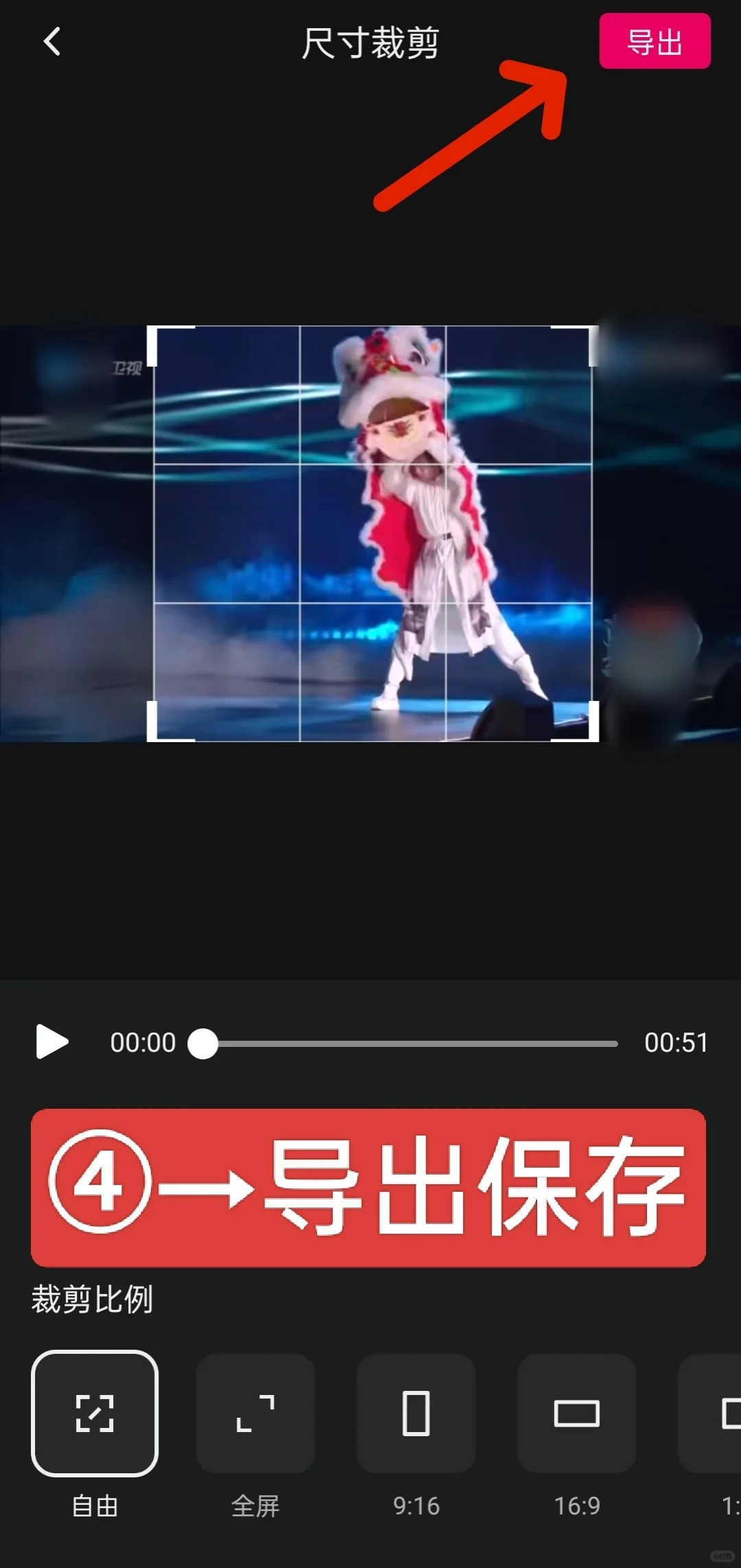 ④:拖动选择裁剪区域,你可以根据自己的需要是选择16:9、4:3、1:1等等,甚至可以自由比例裁剪