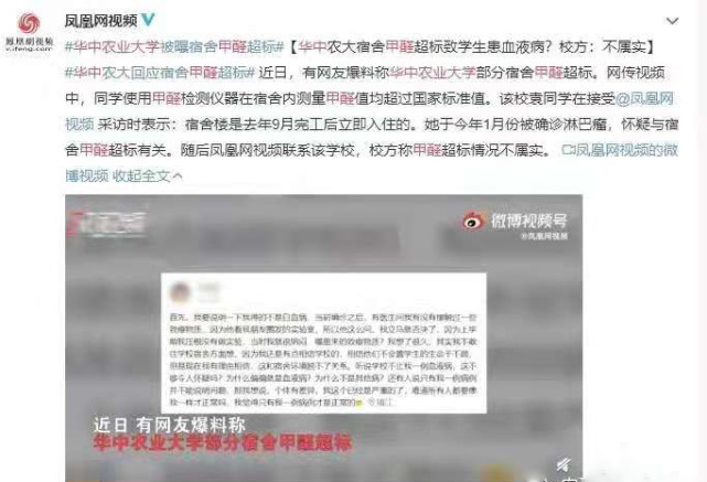 继网曝吉林大学宿舍甲醛事件后,又一所高校—华中农业大学被曝出学生宿舍甲醛超标?!