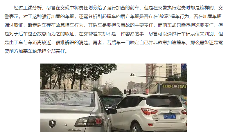前车强行“加塞”,后车故意“撞车”,责任归谁?