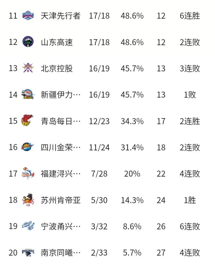 CBA最新排名。CBA常规赛第35轮比赛已全部结束。辽宁队延续第三阶段郭艾伦复出之后不败战绩,目前4连胜,29胜6负排名联盟第一。不过下一轮将与上海队上演强强对话,此战有可能关乎联盟第一最终的归属。 排名第2至第5依次是广厦、上海、浙江稠州、深圳队。其中浙江稠州遭遇两连败,但是感觉刘维伟指导在下一盘大旗。故意输给辽宁队,接着又不敌吉林队。从比赛中可以看出,刘维伟明显比之前收敛了许多,不再是脾气大暴走,不满球员的表现。因而不得不让人怀疑,季后赛临近,浙江队有意避开某支球队,在挑对手。 广东队24胜11负位居第6,在常规赛还剩3轮比赛前提下,广东队落后第4的浙江稠州2个胜场。从目前来看,进前4希望渺茫。这也是近4个赛季,广东队常规赛最差表现。而本赛季广东队季后赛形势,也是近4年最不被看好的一次。 排名第7至第10依次是北京首钢、广州队、山西队与吉林队,以上10支球队都已提前锁定本赛季季后赛席位。而目前季后赛席位还剩最终两席,将在天津队、山东队、北控与新疆队四支球队中产生。 而从余下赛程来看 天津队余下对手包括北控、宁波与新疆; 山东队余下对手分别是福建、北京首钢与广东; 北控对手依次是天津、深圳与福建队; 新疆队对手依次是北京首钢、广东与天津队。 从目前排名及赛程来看,四支球队天津队最有希望打进季后赛。一是天津队赛程最为轻松,而且球队士气正盛,目前6连胜;二是天津队目前排名第11,领先北控、新疆各一个胜场;三是天津队与其他三支球队都有交手战绩优势。