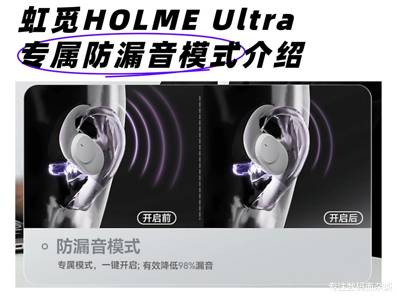 开放式耳机自流行以来就一直有明显的漏音情况,但近几年不少品牌为了提高品质,在漏音处理方面一直通过技术不断改善。比如韶音的自研定向声场技术、开石的低音聚能腔设计,还有虹觅的防漏音模式,都通过声学创新有效控制了漏音。