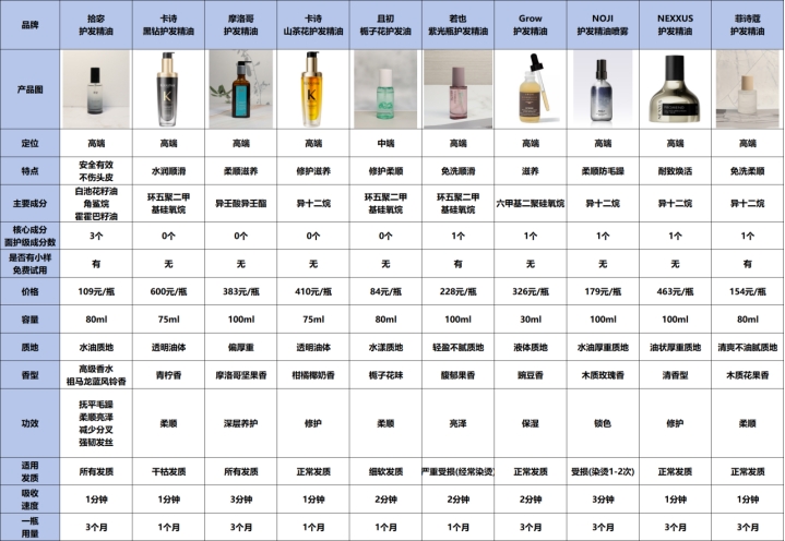 看完选购小妙招,你是不是已经有想试试的方向啦?我把几款自己实测过的护发精油核心表现做成表格了,供大家参考。这些真实用的体会,希望能帮你少踩点坑~