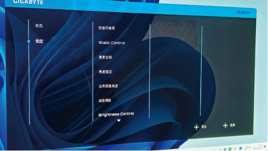 第四代WOLED面板通过改进发光材料与像素结构,提升了面板的亮态寿命并延缓了烧屏风险。同时技嘉在固件层面也提供了像素刷新、屏幕位移等保护机制,玩家可在OSD菜单中便捷设置。在护眼方面,其通过了Eyesafe 3.0、低蓝光及无闪烁等多项认证,对于长时间游戏或兼顾日常办公、内容浏览的用户,能有效减轻视觉疲劳。其镜面屏采用了有效的防反射涂层,在多数室内光环境下能抑制干扰反光,保持画面通透。