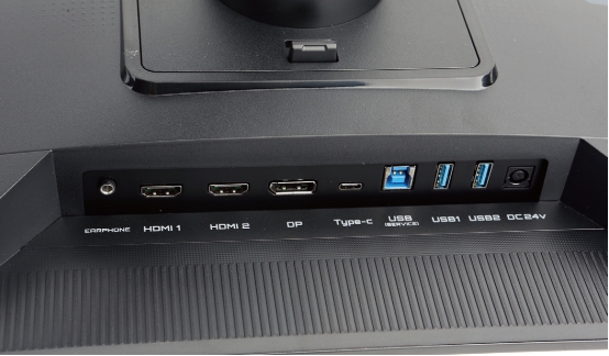 接口配置充分考虑了当前设备生态:包括HDMI 2.1、DisplayPort 1.4、一个支持视频传输与18W反向供电的全功能Type-C接口以及USB Hub,便于连接笔记本、游戏主机及外设,实现简洁的线缆管理。